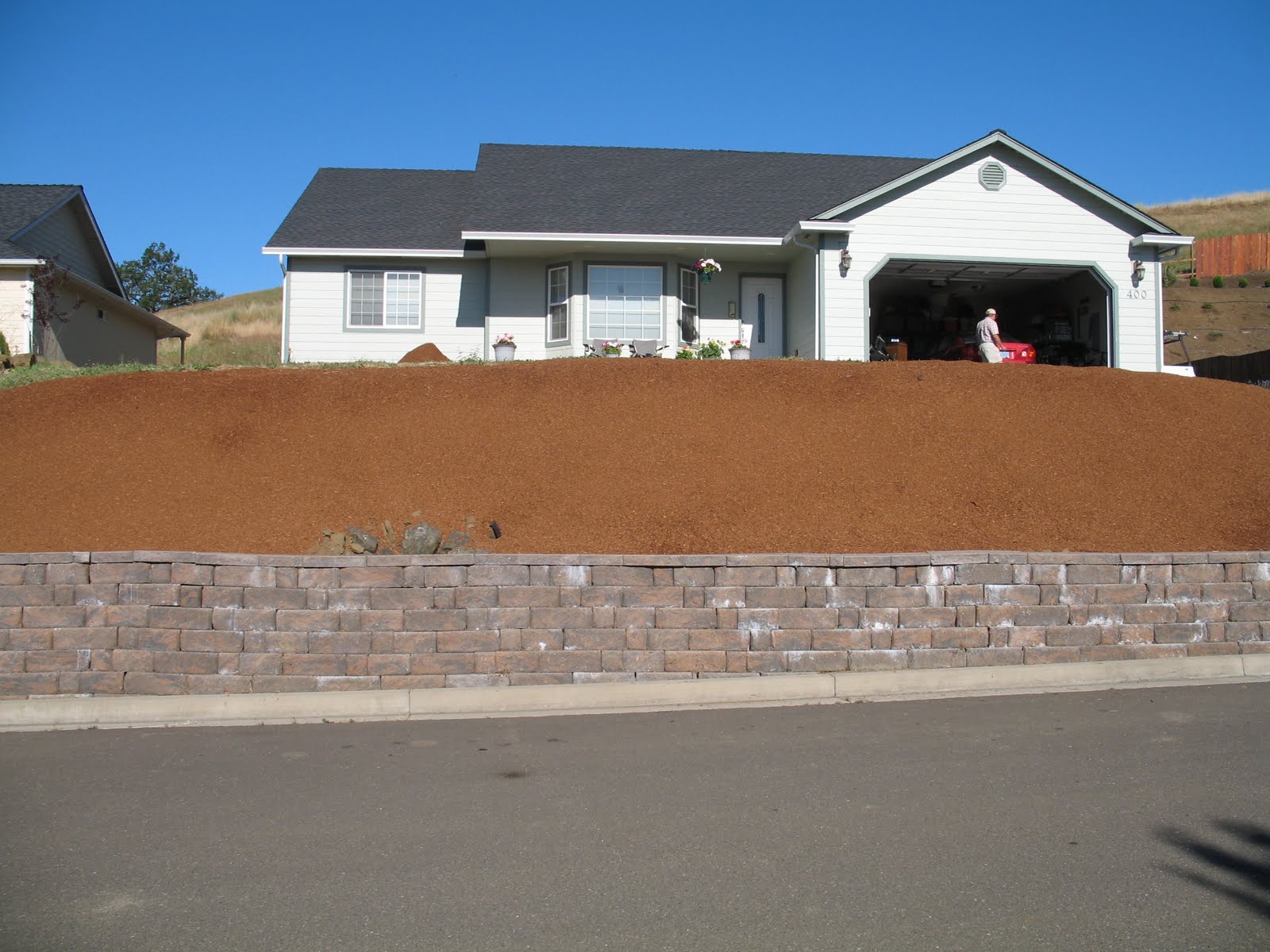 Then we ordered 11 yards of bark to be blown on top of the geo-mesh.
